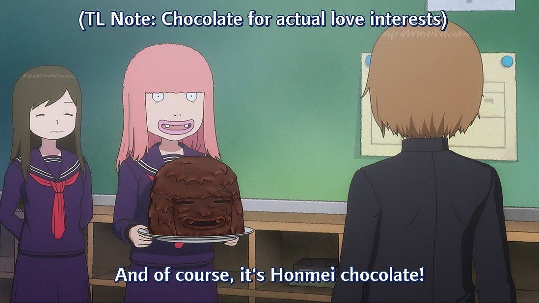 本命チョコをそのままHonmei chocolateとするところがいかにもファンサブらしいですが、一応本命チョコについて英語版wikiがあるので結構海外でも有名な言葉なのかも?wikiはこちら