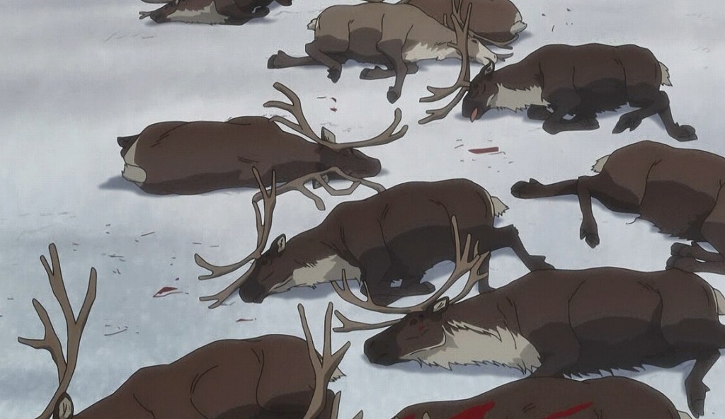・今回はトナカイの話と尾形のスコープなしでの射撃の腕がひけらかされただけのイマイチなエピソードだった。
