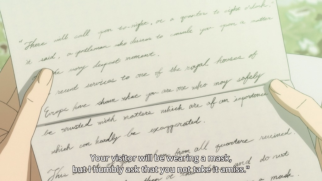 What was interesting and made me suspicious ahead of time was that the King of Bohemia didn't put on his mask when he was leaving Sherlock