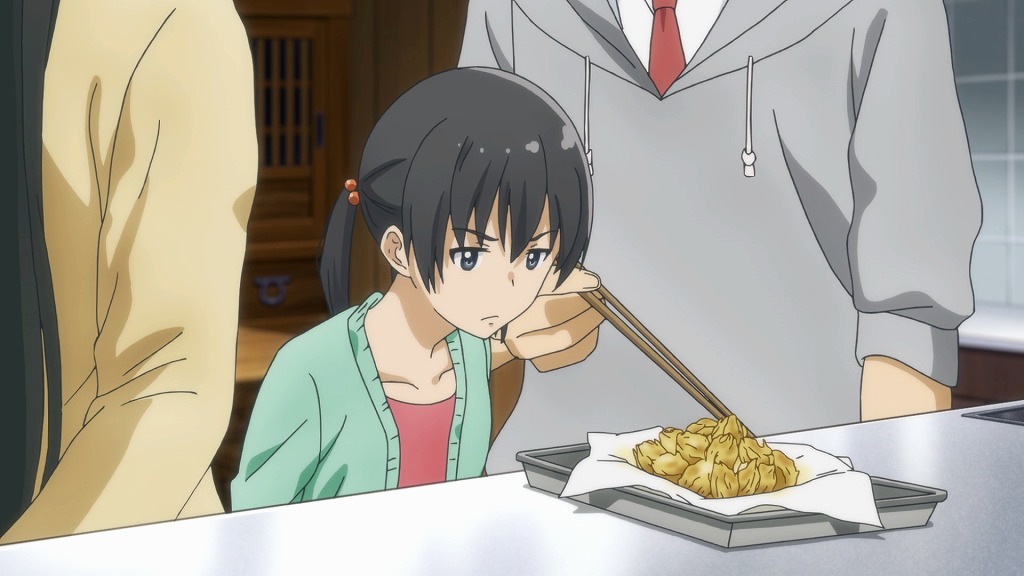 I love how Chinatsu actually acts like a little kid. I feel like children in anime seem more like an adults in a miniature bodies a lot of the time, instead of actually being an immature child. But she actually behaves the way an elementary aged child would. Slamming the door on a stranger, making faces as people eat foods she doesn't like, and last episode dancing around in excitement because she was flying. She's one of the most believable child characters I've seen in a while.