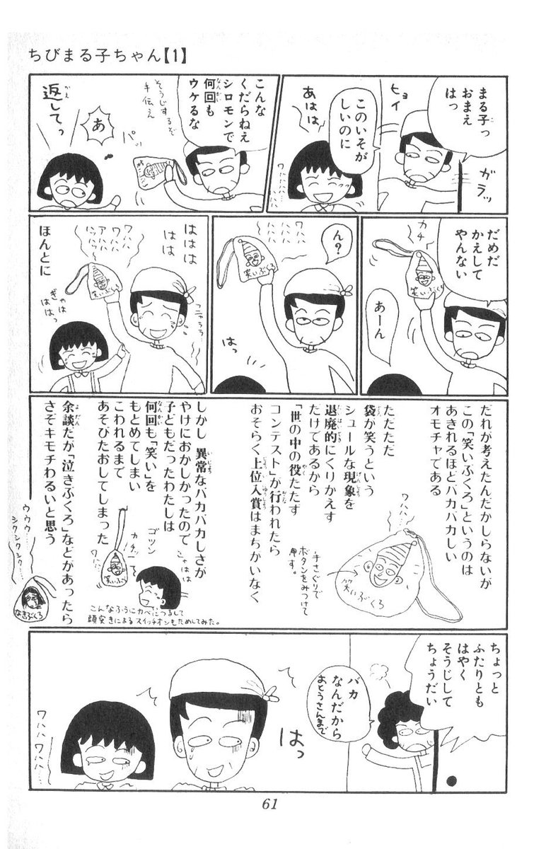 余談ですが笑い袋という存在を初めて知ったのはちびまる子ちゃんだったような気がする(というか、ちびまる子ちゃん以外でコイツの存在を見かけた記憶がないw)