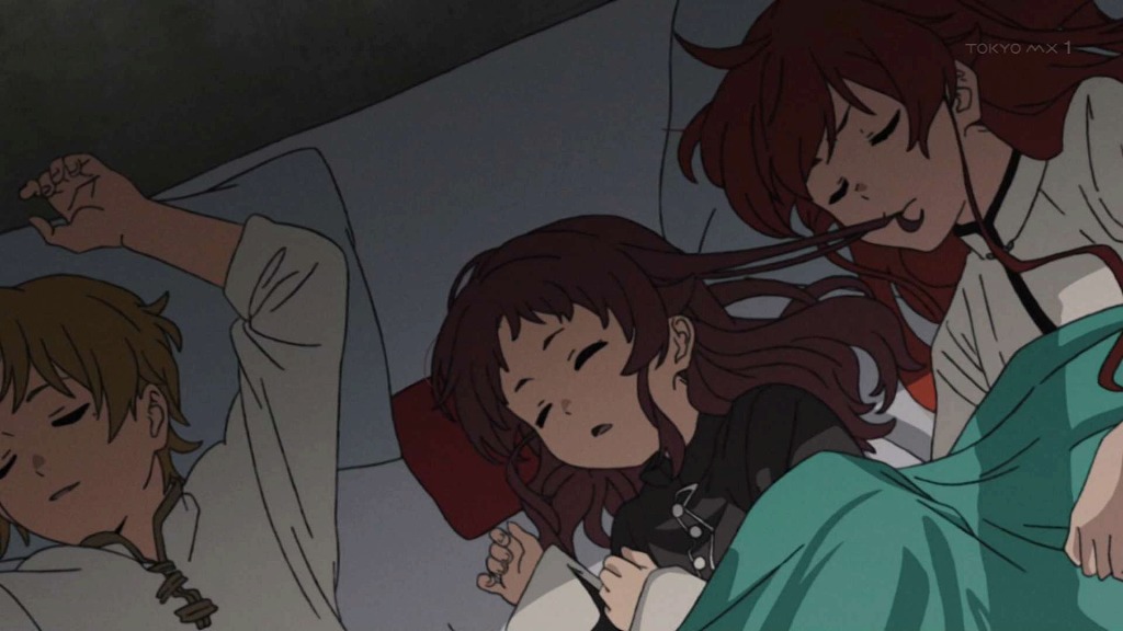 Out of all the sleeping habits I've seen in anime, Eris slurping on Aisha's hair like it's some sort of noodle ranks high.