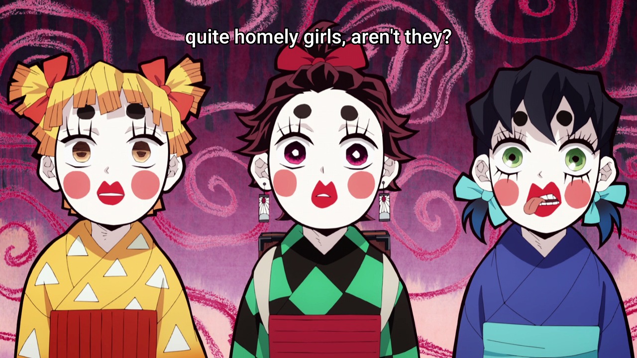 I was wondering how they were gonna do that gag with tanjirou without a narrator and they did a pretty good job of it・ここの連中が嫌っているのと同じぐらい自分は正直言うと善逸のことが大好きだ。今回の遊郭編は彼のキャラクターを最大限引き出すために作られた話のように感じる。